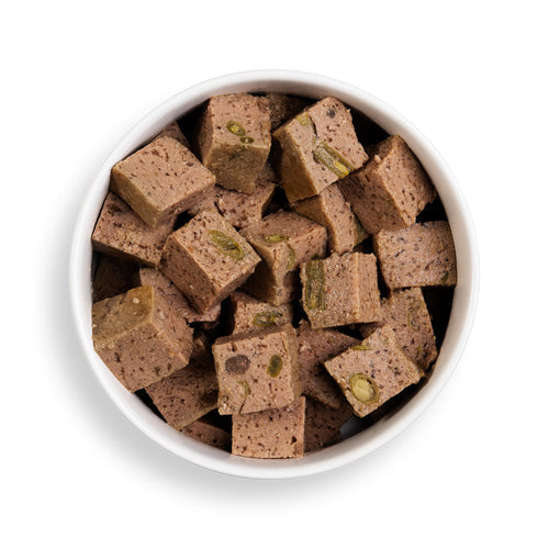 A delicious mix of gently steamed good quality duck & venison paired with delicious green beans and apricots makes this recipe a real treat at dinner time! Free from junk, artificial colours, flavours & preservatives, this grain free recipe supports a healthy, natural diet and is perfect for even the most sensitive of tummies.