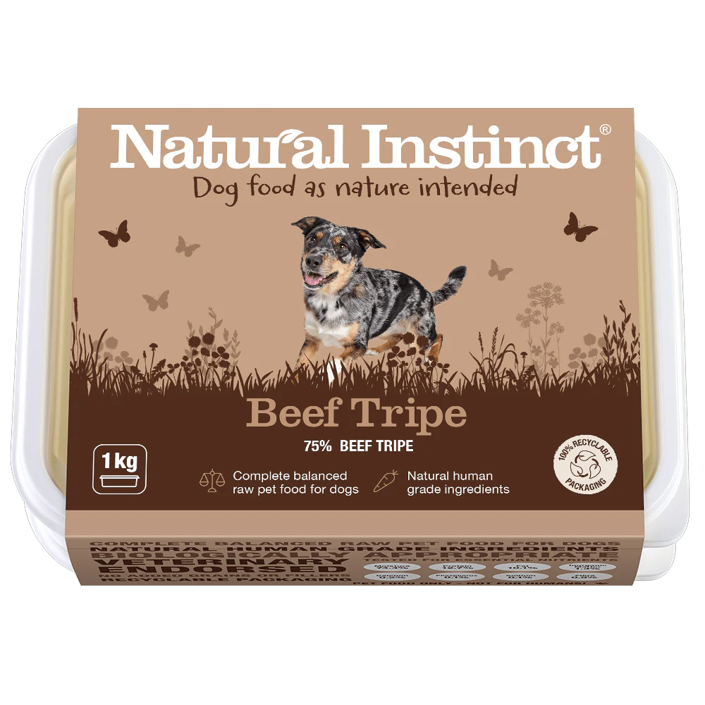 Natural Instinct's Natural Beef Tripe is a complete and balanced raw dog food. This slightly smelly but incredibly tasty recipe contains beef green tripe (75%), vegetables and fruits. We've even added extra calcium in the form of sea kelp to make up for the fact this recipe is bone-free.